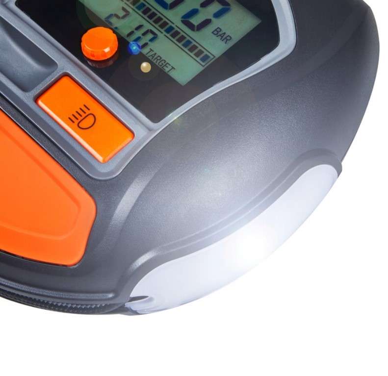 Funkcja Auto Stop: Ta inteligentna funkcja sprawia, że kompresor automatycznie się wyłączy, gdy osiągniemy żądane ciśnienie. Dzięki temu, nie musisz martwić się o nadmierne napompowanie opon.