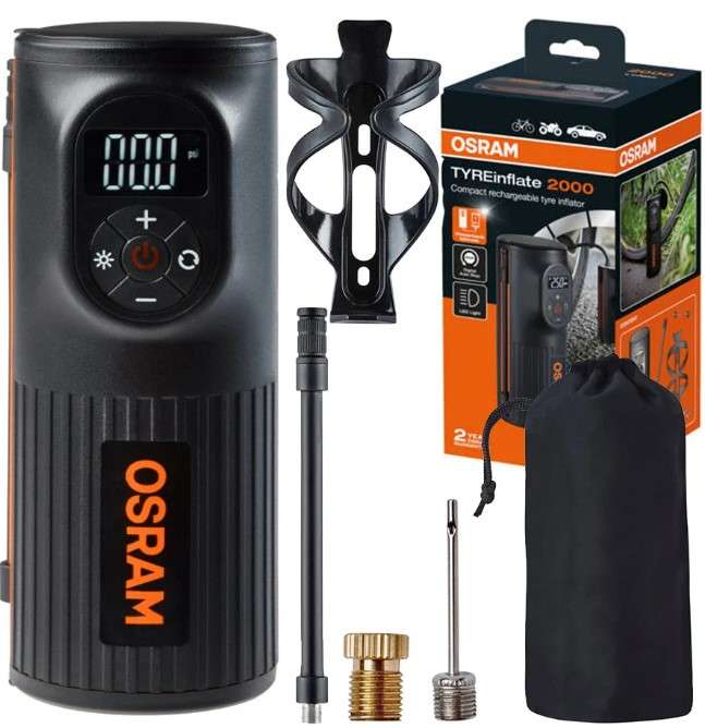 Mobilność: Dzięki swojej lekkiej i kompaktowej konstrukcji, kompresor OSRAM TYREinflate 2000 jest idealnym narzędziem do zabrania w podróż. Dołączona torba do przechowywania ułatwia transport i przechowywanie urządzenia.